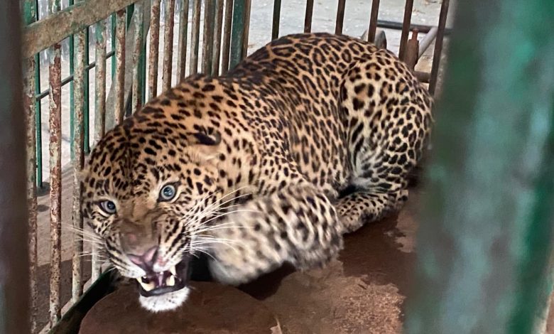 खीरी से रेस्क्यू किया गया तेंदुआ, नवाब वाजिद अली शाह प्राणी उद्यान में भर्ती